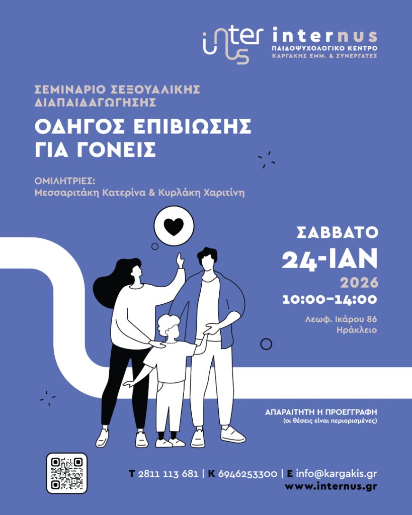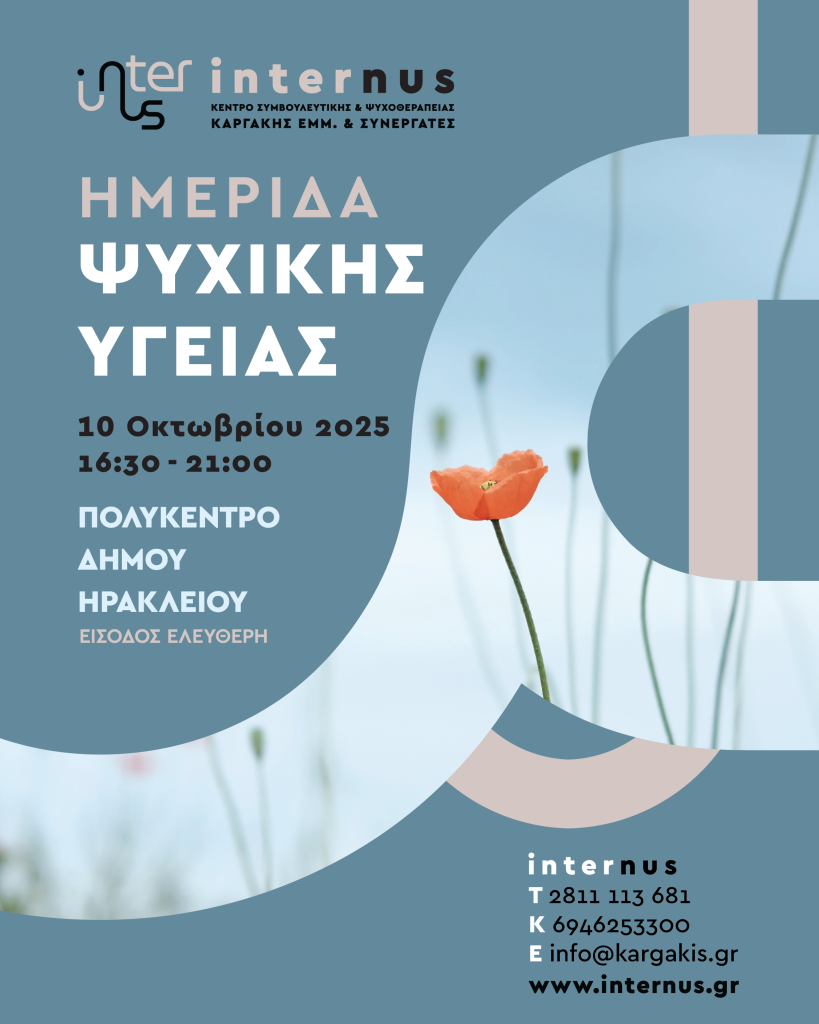 12 Φεβρουαρίου, 2026 Εργαστήριο Αποτελεσματικού Γονέα Τα νέα μας 28 Ιανουαρίου, 2026 Νέο γραφείο | Αθήνα, Χαρ.Τρικούπη 26 Τα νέα μας 13 Ιανουαρίου, 2026 Ομιλία στην ακαδημία ποδοσφαίρου του Εργοτέλη Τα νέα μας 6 Ιανουαρίου, 2026 Σεμινάριο σεξουαλικής διαπαιδαγώγησης Τα νέα μας 25 Νοεμβρίου, 2025 Σεξουαλική διαπαιδαγώγηση και πρόληψη σεξουαλικής κακοποίησης Τα νέα μας 24 Νοεμβρίου, 2025 Ομιλία : Το σώμα που μιλά Τα νέα μας 26 Οκτωβρίου, 2025 Ομιλία : Το συνεχές της θλίψης Τα νέα μας 21 Οκτωβρίου, 2025 Ομιλία στην ακαδημία μπάσκετ Ο.Φ.Η. Τα νέα μας 16 Οκτωβρίου, 2025 Ημερίδα ψυχικής υγείας Τα νέα μας 15 Οκτωβρίου, 2025 Έναρξη νέας ομάδας ψυχοεκπαίδευσης Τα νέα μας 1 Οκτωβρίου, 2025 Ομιλία: Η εικόνα του σώματος ως καθρέπτης της ψυχής και του κόσμου Τα νέα μας